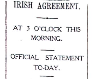 The Press Association was informed by a number of the Cabinet that “an agreement has in fact been reached,” and that the terms will be communicated to the Press in time for Wednesday morning’s publications. (for 7 December 1921)