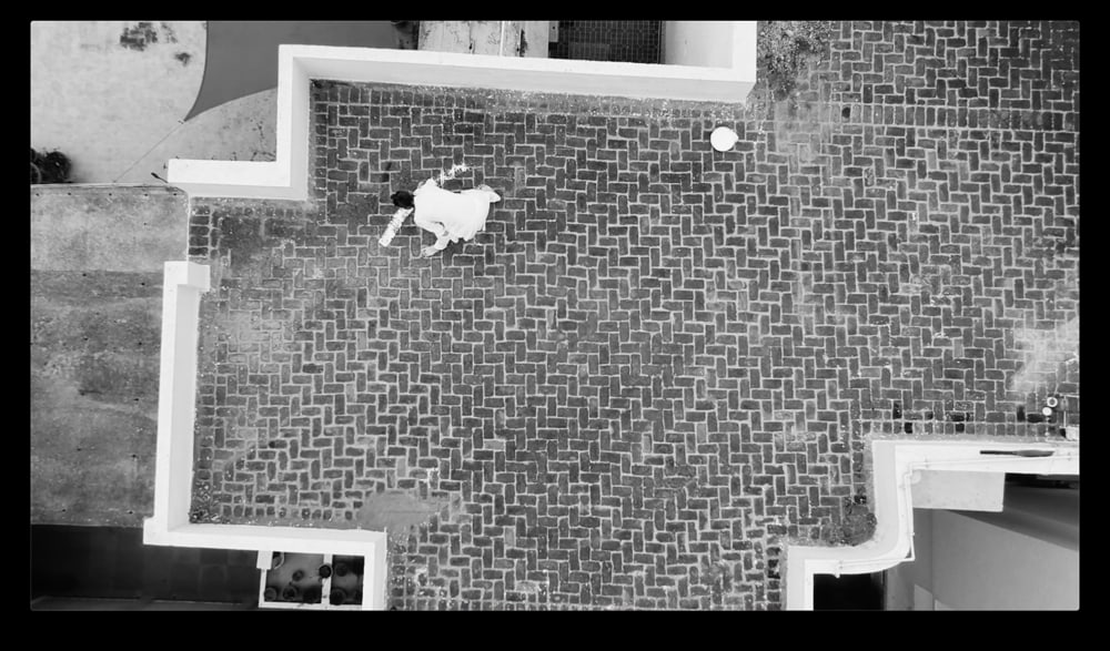 Setting the Stage For a Gathering of Friends (2020) was made in the pandemic in Delhi when the artist Himali Singh Soin was confined to her home. Through an absorbing aerial view of a figure drawing a circle on the flat roof of a building, Hylozoic/Desires set the stage for a gathering of