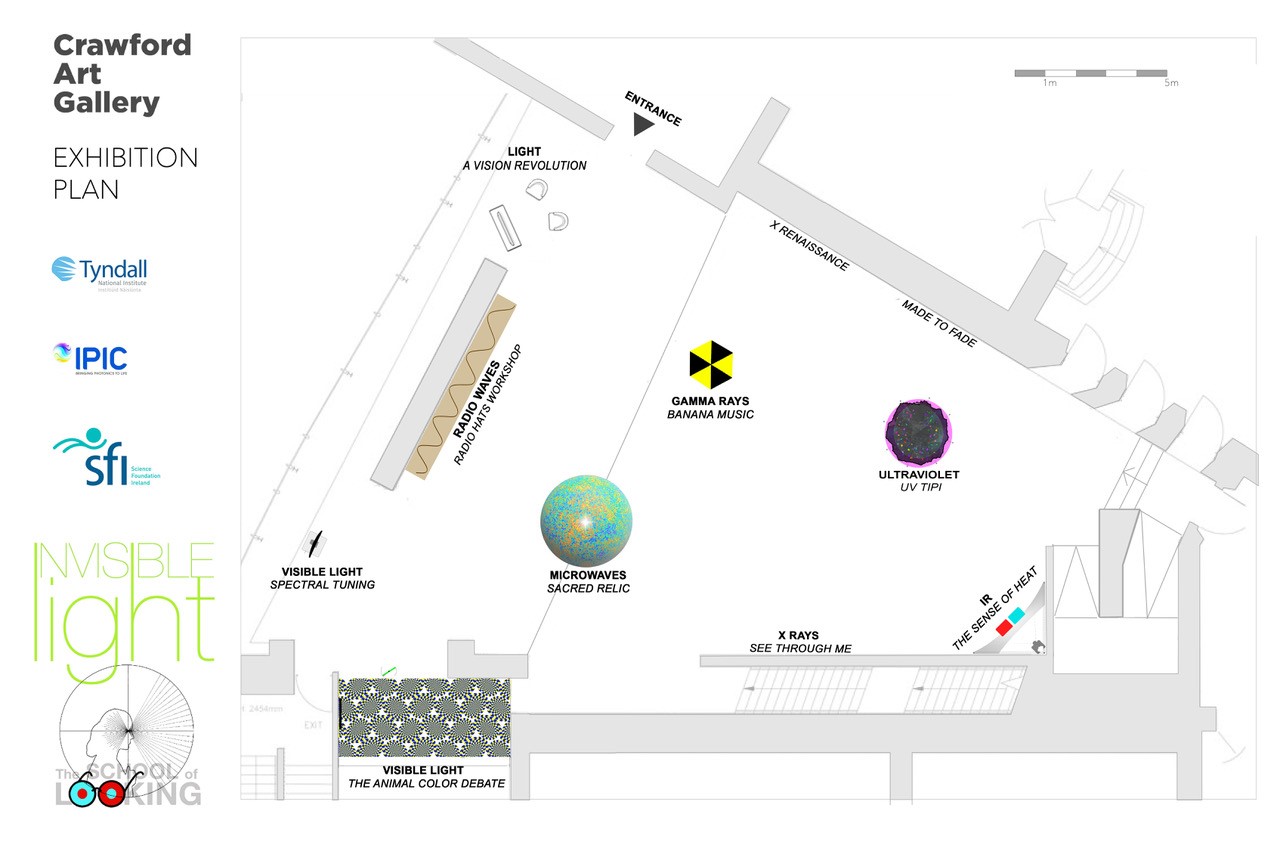 The exhibition Invisible Light presented 8 artworks which each investigated a different form of invisible light, from the mysterious gamma ray to the familiar radio wave. The artists collaborated with scientist researchers in the Tyndall Institute University College Cork to create the artwork. The exhibition was funded by the Science Foundation of Ireland, because they are interested in different ways that people can learn more about science apart from textbooks and they are keen to promote science to a wide audience.