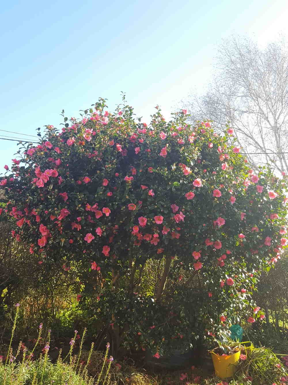 Gillian is nurturing some tiny seedlings at the kitchen table, and Inge shares the 'ridiculous pink' of flowering camellias.
