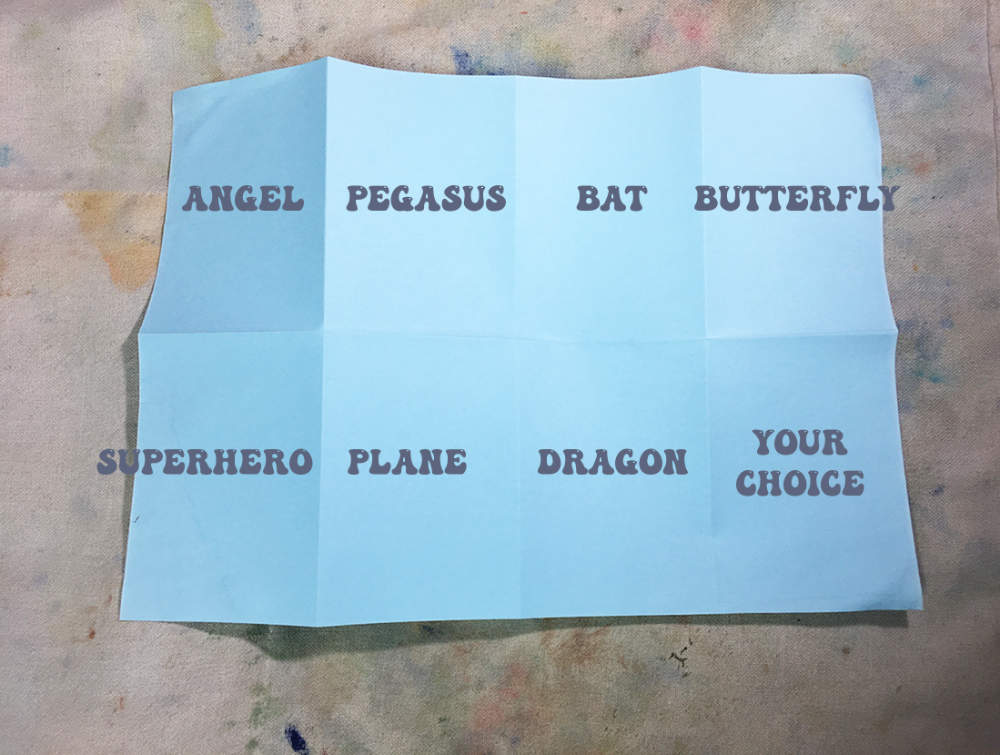 Now draw yourself as the following winged things in each section: