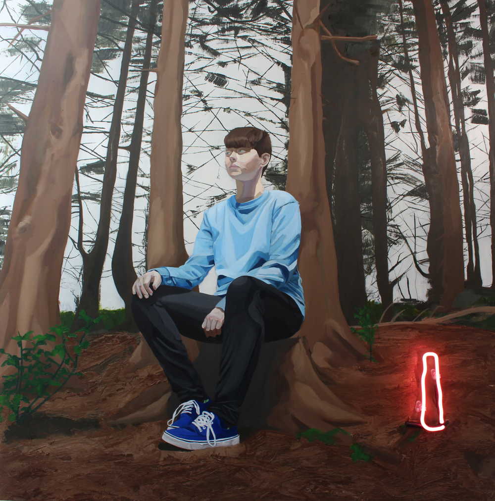 The setting is near Dylan’s home in Lucan, County Dublin. The combination of landscape and oil paint echo heritage and tradition, yet the bold neon implies an ‘otherness’. Of this the artist notes: “this juxtaposition is not unlike how queer culture has developed outside wider society.”