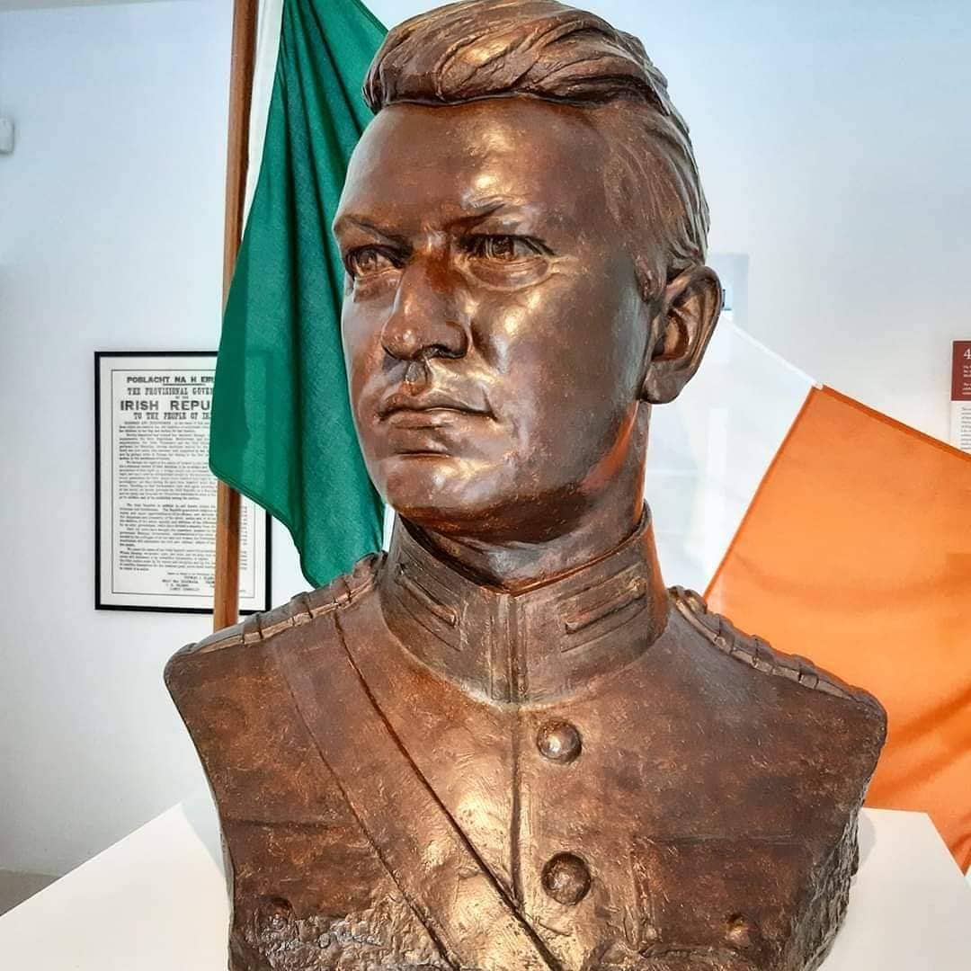 Séamus Murphy’s monumental bust of Collins and a corresponding relief portrait are both on long-term loan from Crawford Art Gallery to Michael Collins House.