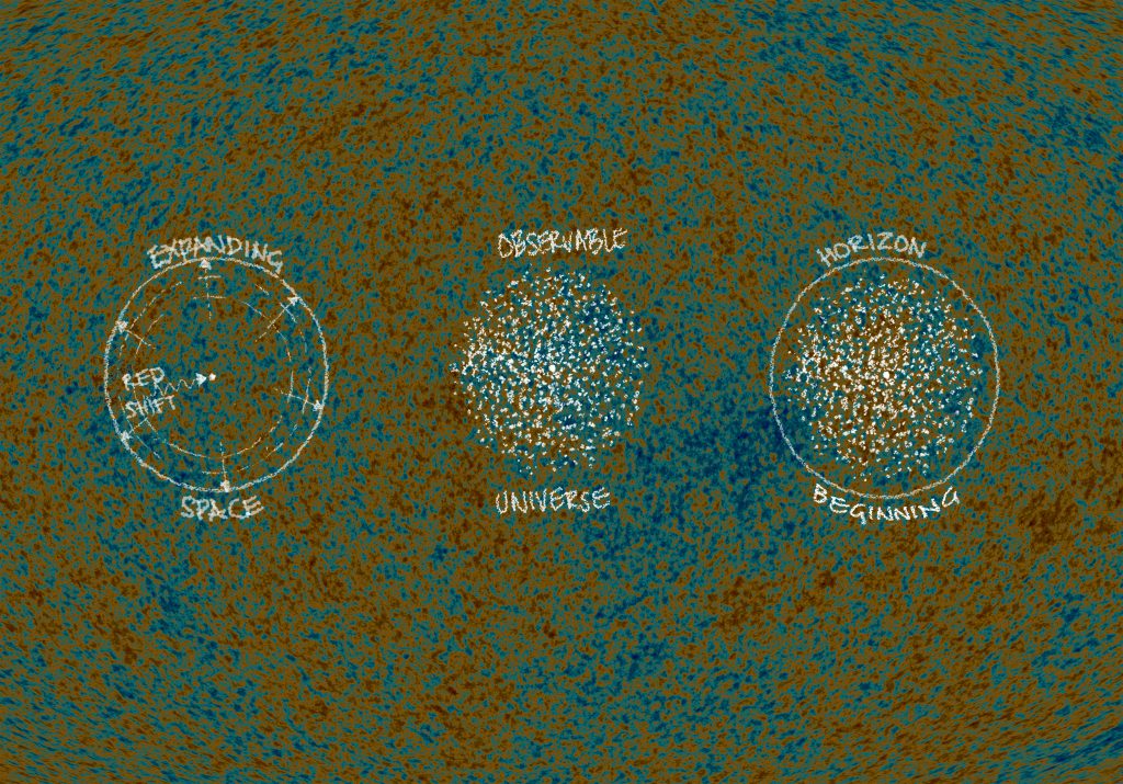 The Cosmic Microwave Background is the oldest light in the universe. Once impossibly bright and hot, it has cooled to less than three degrees above absolute zero and faded to invisible microwaves. But it is still there – a true relic of the beginning of the universe, perceptible to radio telescopes as a background to everything else we can see in the observable universe, the surface of a sphere that we observe from its very centre – a horizon that is the beginning of time and the end of space.