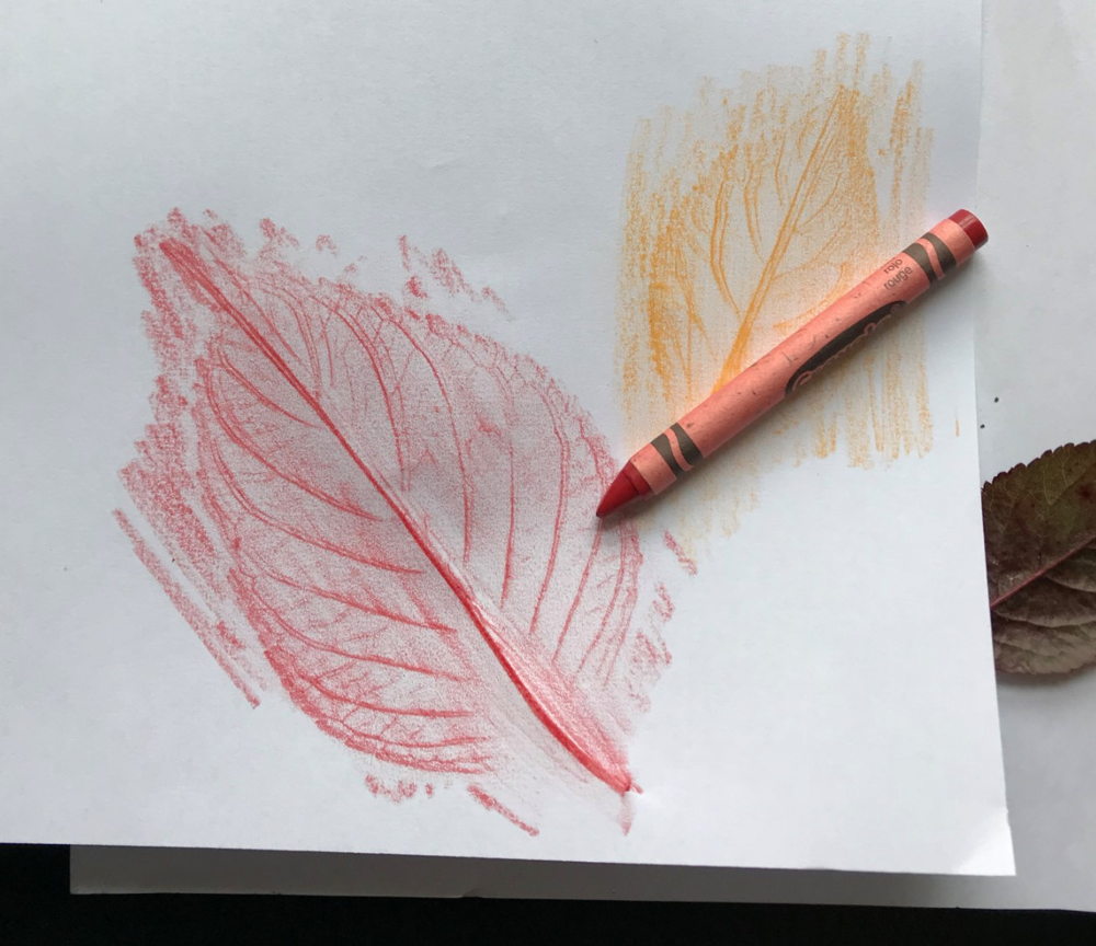 Gather some leaves of different shapes and sizes in your garden or a park. Take your (dry) leaf and place it face down on some paper so that the veins are pointing up. Cover your leaf with another piece of paper and rub the crayon over the leaf, tilting the crayon down so you aren’t using the tip of the crayon. Repeat this with more leaves and change colours for each leaf for a colourful creation.