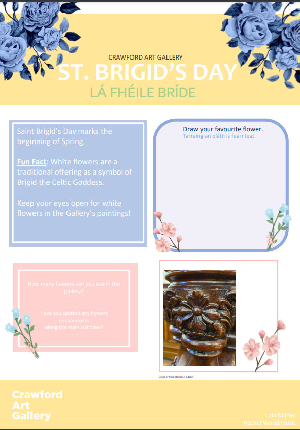 Explore the themes of Brigid, both the Celtic Goddess and the Christian Saint, through an interactive trail in the Gallery for Lá Fhéile Bríde. Available all weekend in the Gallery and online!