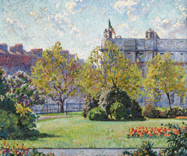 Front: Brigid Ganly, Faiche Laighean (Leinster Lawn), c.1947, oil on canvas, 49.8 x 59.6 cm. Purchased, An tOireachtas, 1947 (Gibson Bequest Fund). © the artist’s estate.