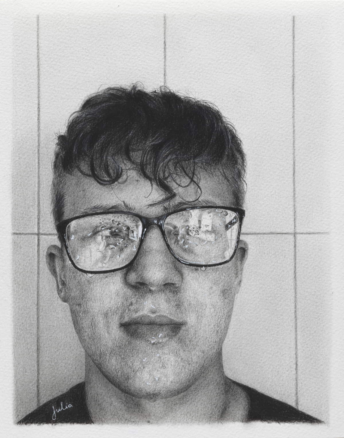 I used simple forms and features to portray sadness. Major events of the pandemic are spread out as if the thoughts of the